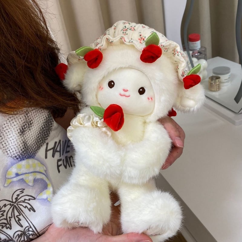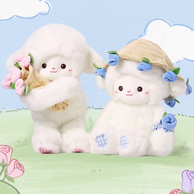 - 1 × 🐑 Niedliches Schaf-Plüschtier mit Rosenstrauß