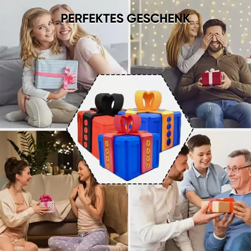 Diese „nervige Geschenkbox“ wurde entwickelt, um das Schenken unterhaltsam und herausfordernd zu gestalten. Der Beschenkte muss herausfinden, wie er sie öffnen kann – das sorgt für Lacher und Überraschungen bei jeder Gelegenheit!