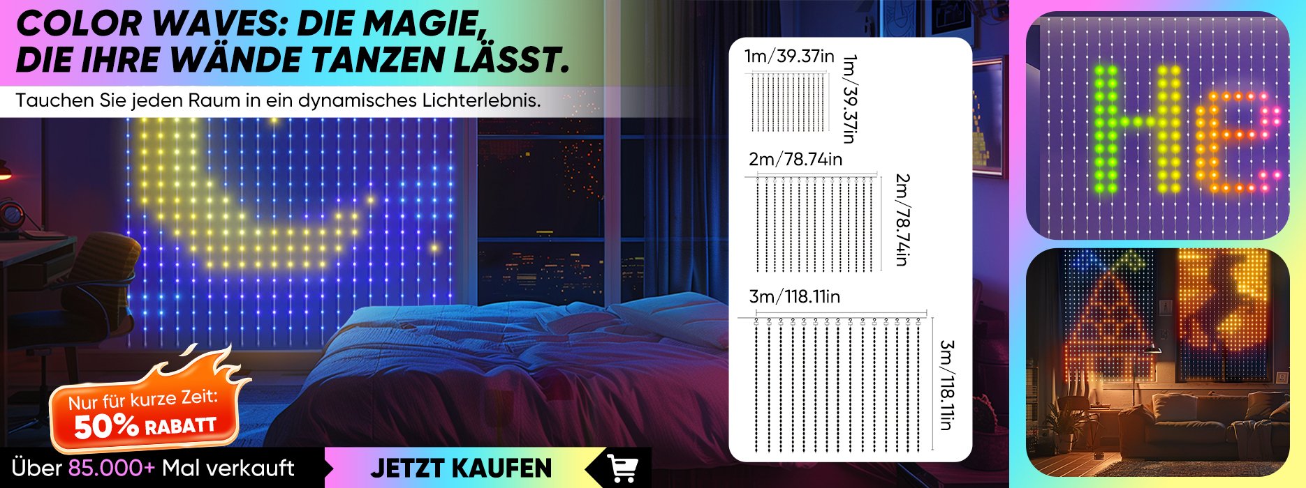 Die Farbauswahl ist riesig. Man kann nicht nur die Standardfarben wählen, sondern über die App wirklich jeden erdenklichen Farbton einstellen. Die Flexibilität ist super.