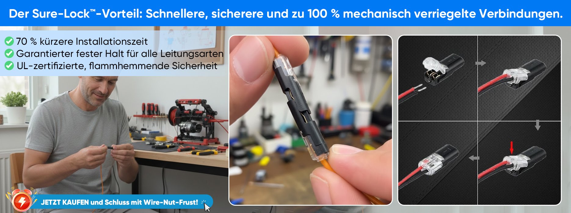 Absolut fantastisch! Der Steckmechanismus ist unglaublich schnell und die Verriegelung sitzt bombenfest – keine Wackelkontakte mehr. Dieser Verbinder hat meine Verdrahtungszeit halbiert. Sehr empfehlenswert für schnelle und zuverlässige Verbindungen.