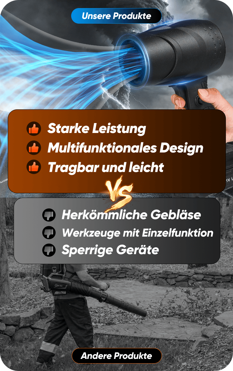 Herkömmliche Gebläse sind sperrig und schwer zu bedienen!