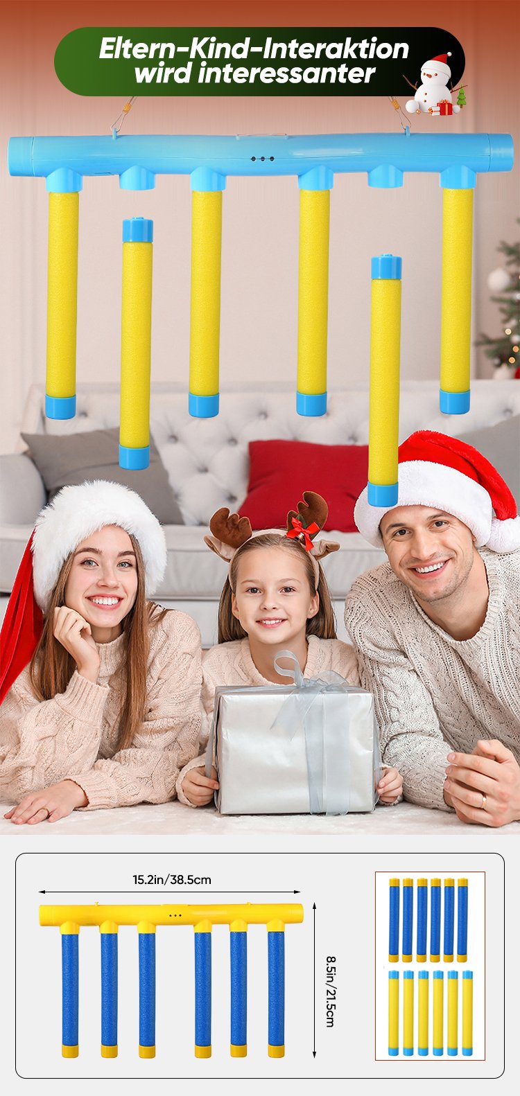 Dieses Reaktionstrainingsspielzeug besteht aus hochwertigem Material, ist langlebig, nicht leicht zu zerbrechen, hat abgerundete Kanten, fühlt sich angenehm an und verursacht keine Verletzungen. Das Stäbespiel ist einfach zu installieren, für die Installation sind keine Werkzeuge erforderlich.