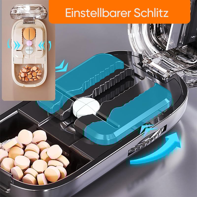 Mit diesem Tablettenteiler können Sie mehrere Pillen gleichzeitig teilen: 200 Pillen in der Hälfte in weniger als 15 Minuten und Monatsmedikation in unter 5 Minuten vorbereiten.